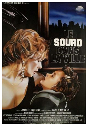 Après La vie rêvée et L’arrache coeur, Mireille Dansereau continue son exploration de la solitude et du désespoir dans ce drame intimiste qui met en opposition la vie et la mort, l’innocence et la résignation. Le film Le sourd dans la ville est une adaptation du roman éponyme de Marie-Claire Blais. Il raconte l’histoire d’une femme de famille aisée qui quitte son milieu pour s’installer dans un hôtel minable où elle découvre un autre monde. Il s’agit de la seconde adaptation d’un roman de Marie-Claire Blais au cinéma, après le drame français Une saison dans la vie d’Emmanuel réalisé par Claude Weisz en 1973.